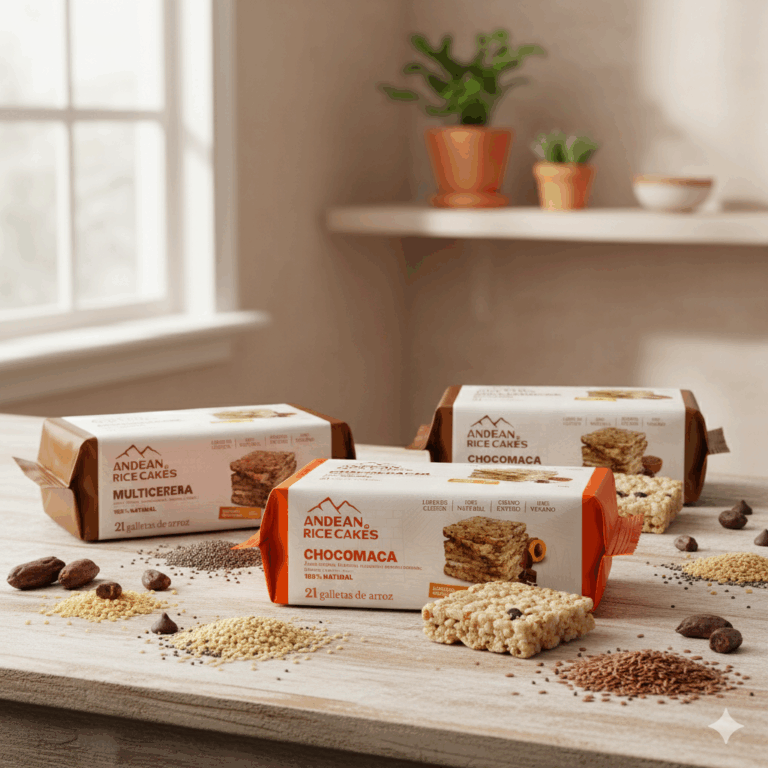 Descubre el equilibrio perfecto entre nutrición y sabor con ANDEAN RICE CAKES. Nuestras Galletas de Arroz con quinoa, kiwicha, cacao, lúcuma y yacón son la opcion ideal para quienes buscan un snack saludable y delicioso.